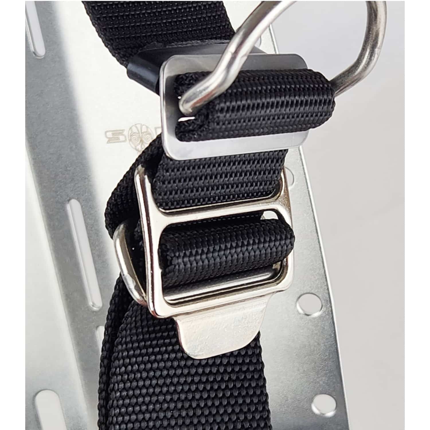 6 Stainless steel D rings. The plate is available in stainless steel or aluminium back plate.
