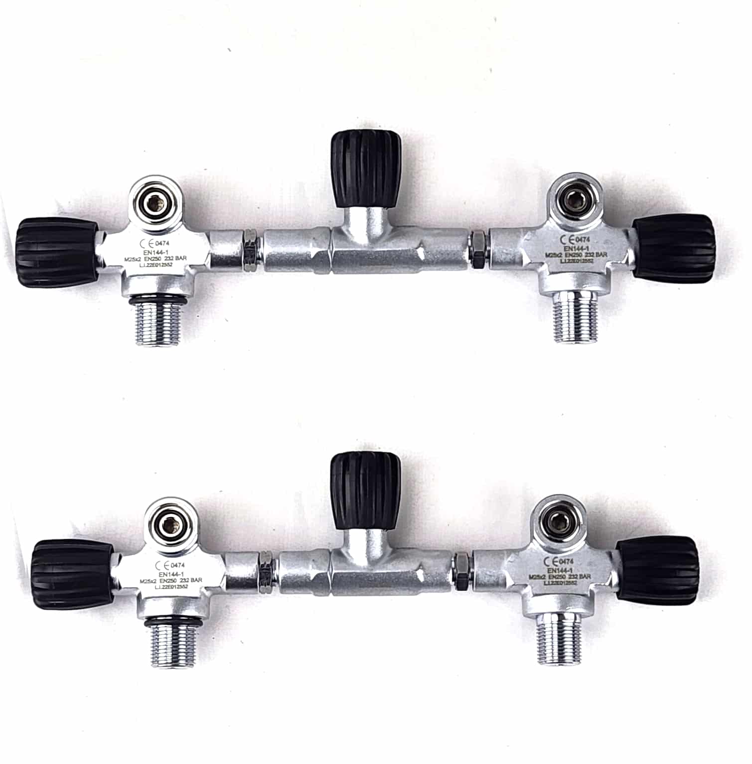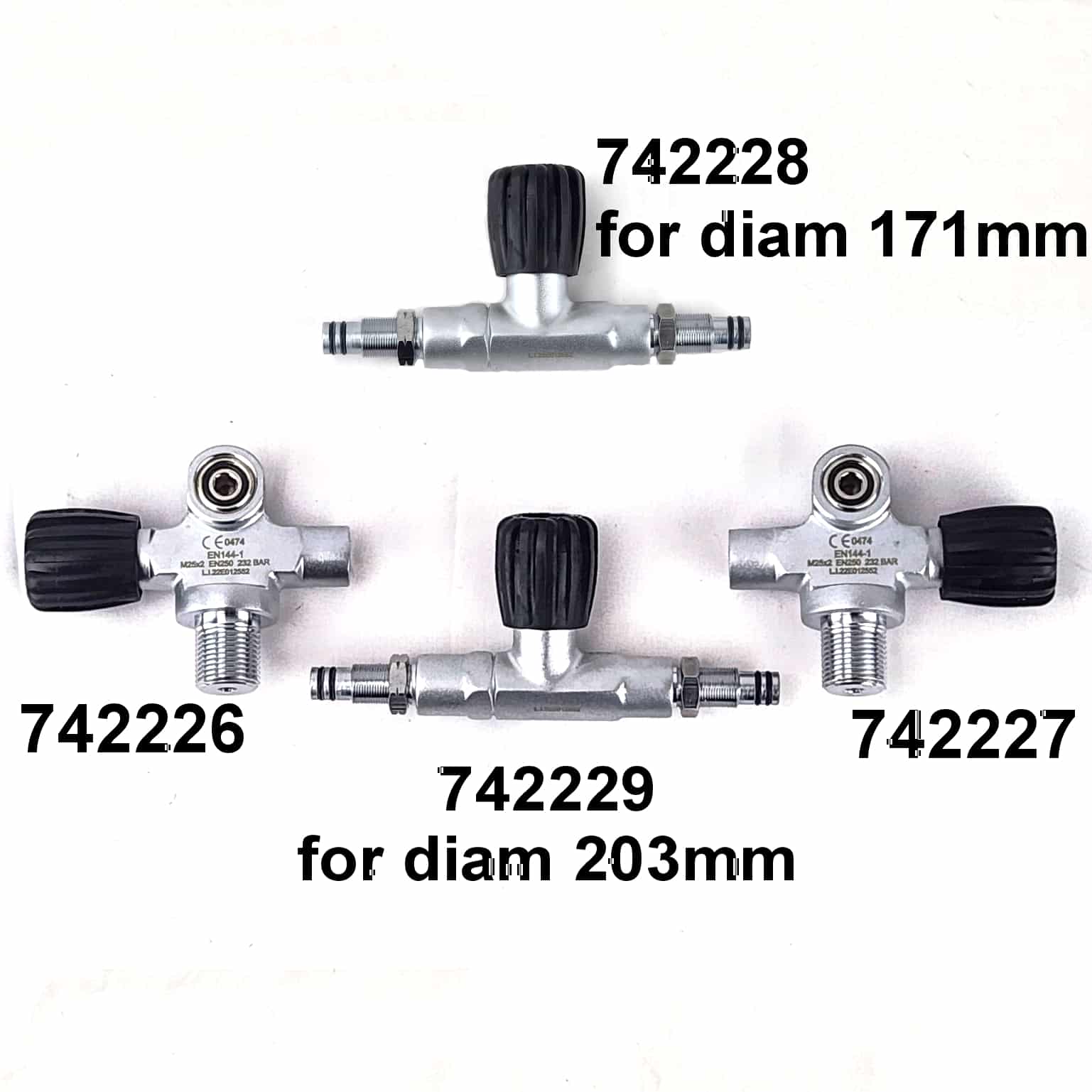 Manifold twin tank valve with separation valve screw for tanks with 171 and 203mm diameter