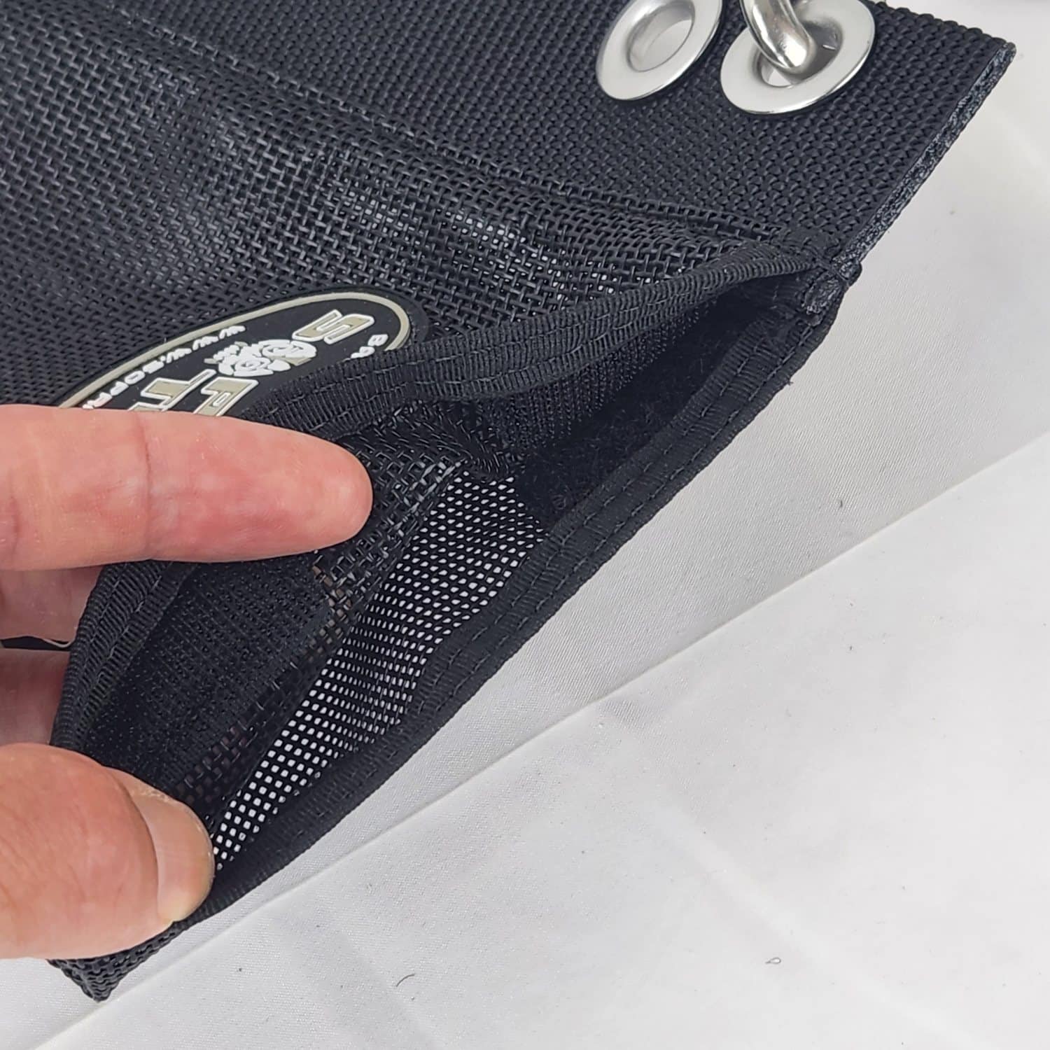 Multipurpose net pouch with side velcro opening, can be used very well in sidemount attached to your squares for small size equipment
