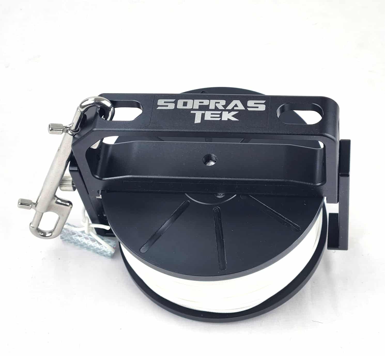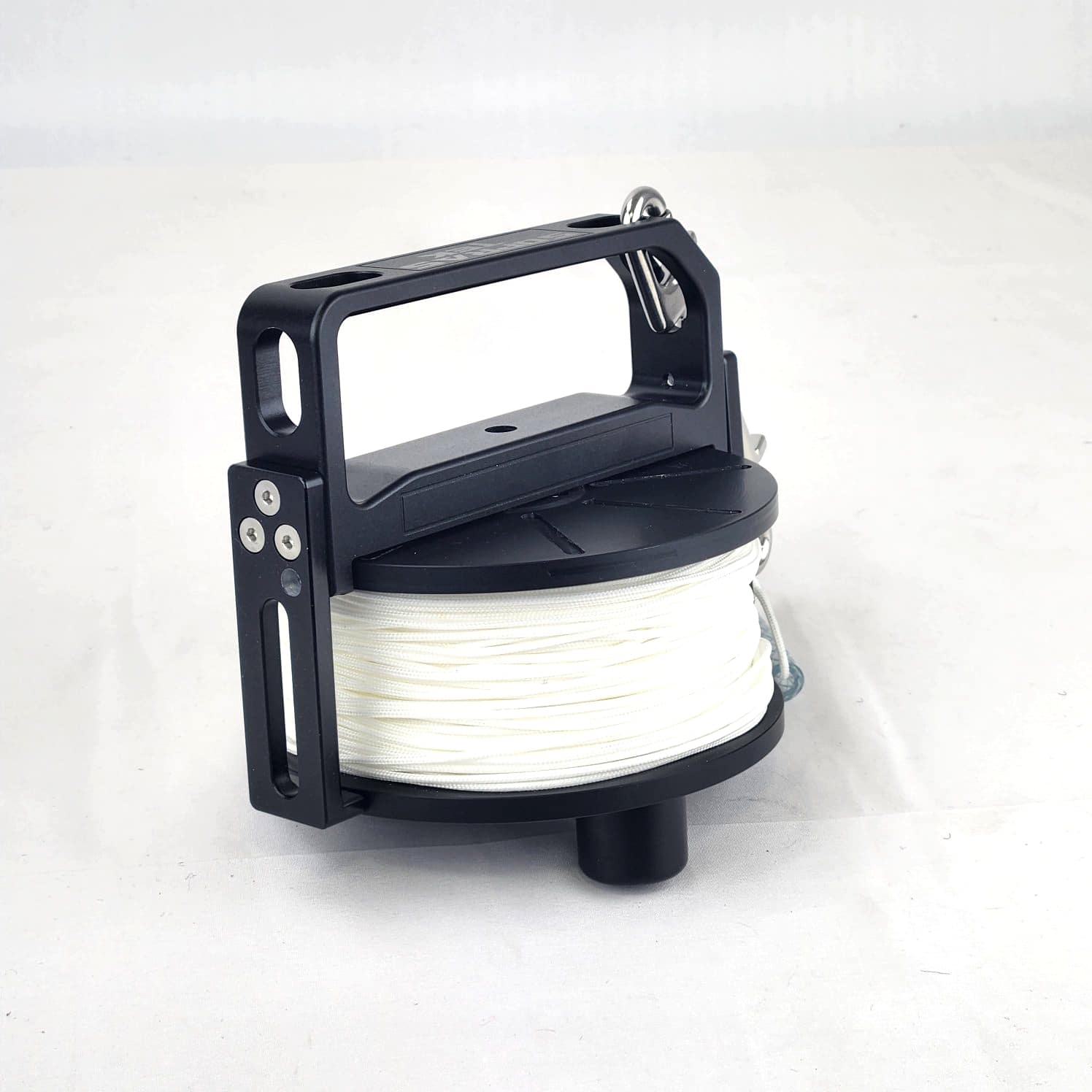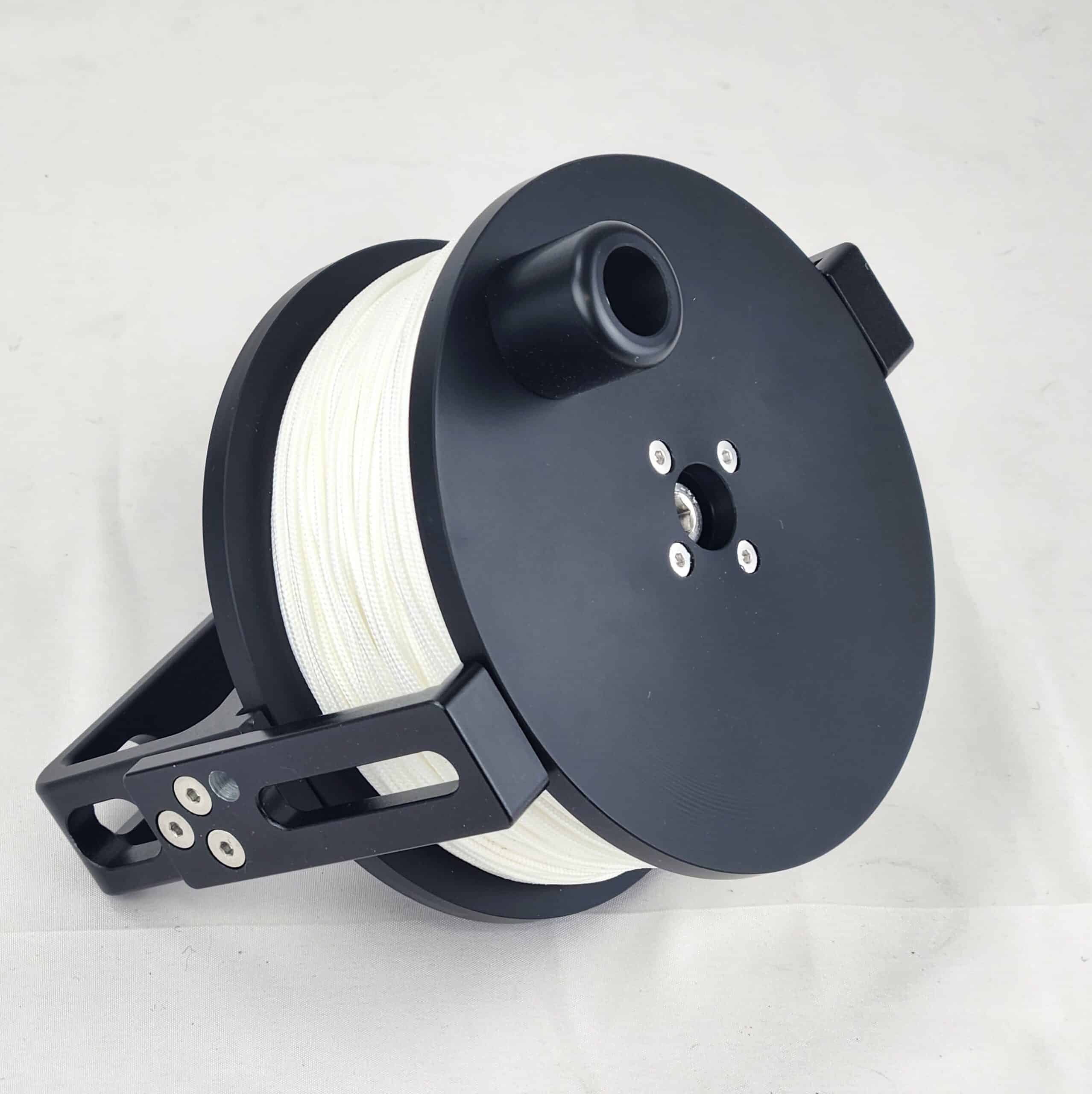 The spool is made of Delrin, which makes it almost neutral in buoyancy. The handle is in aluminum and has no 90 degrees angles very nice to manouvre and well balanced. Also it has two large openings for a doubleender to move freely in all directions. The 120mm doubleender is included. Precision tooling and assembling.
