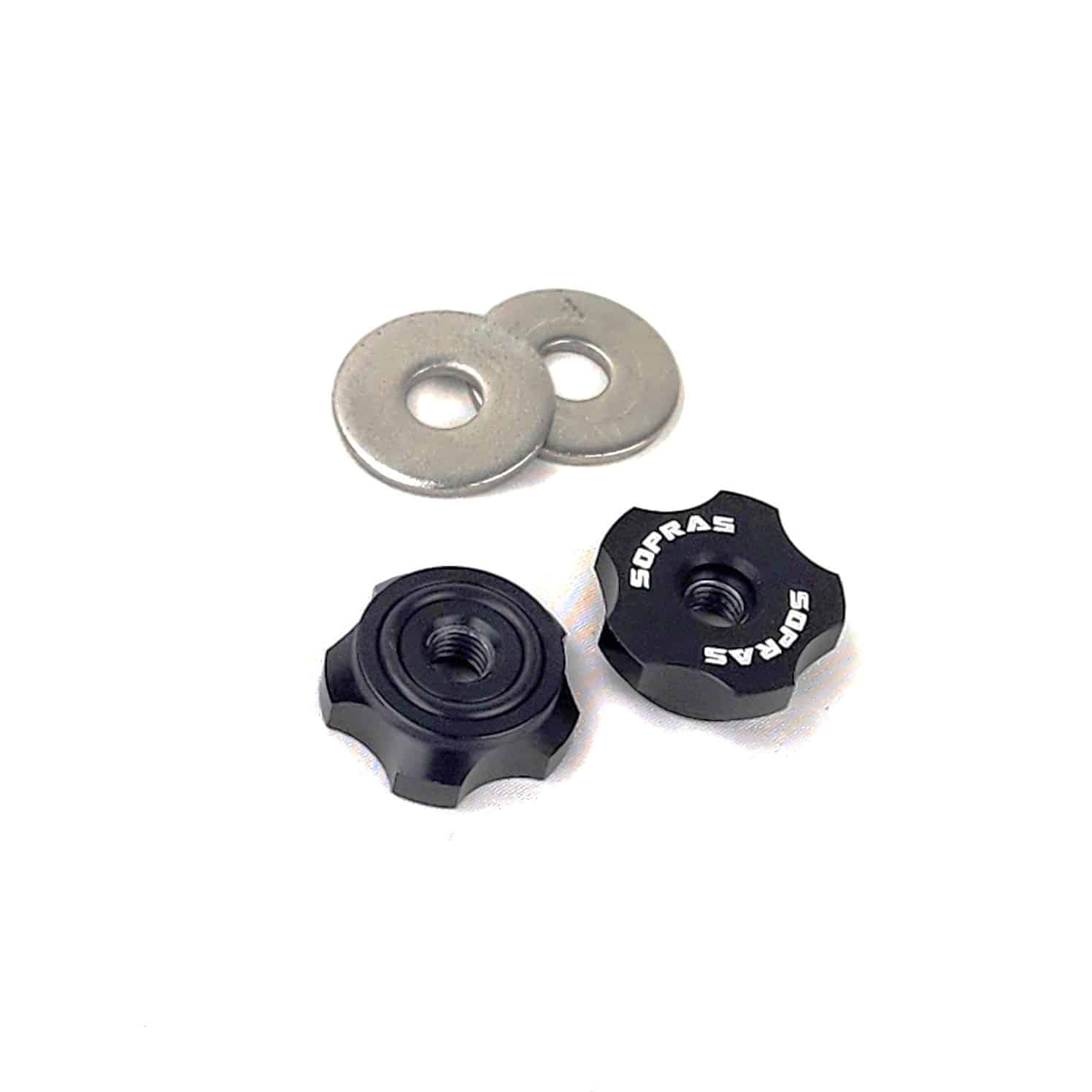 Anodized aluminium with thread M8 with Oring for easy tightening. Good grip. Price per pair