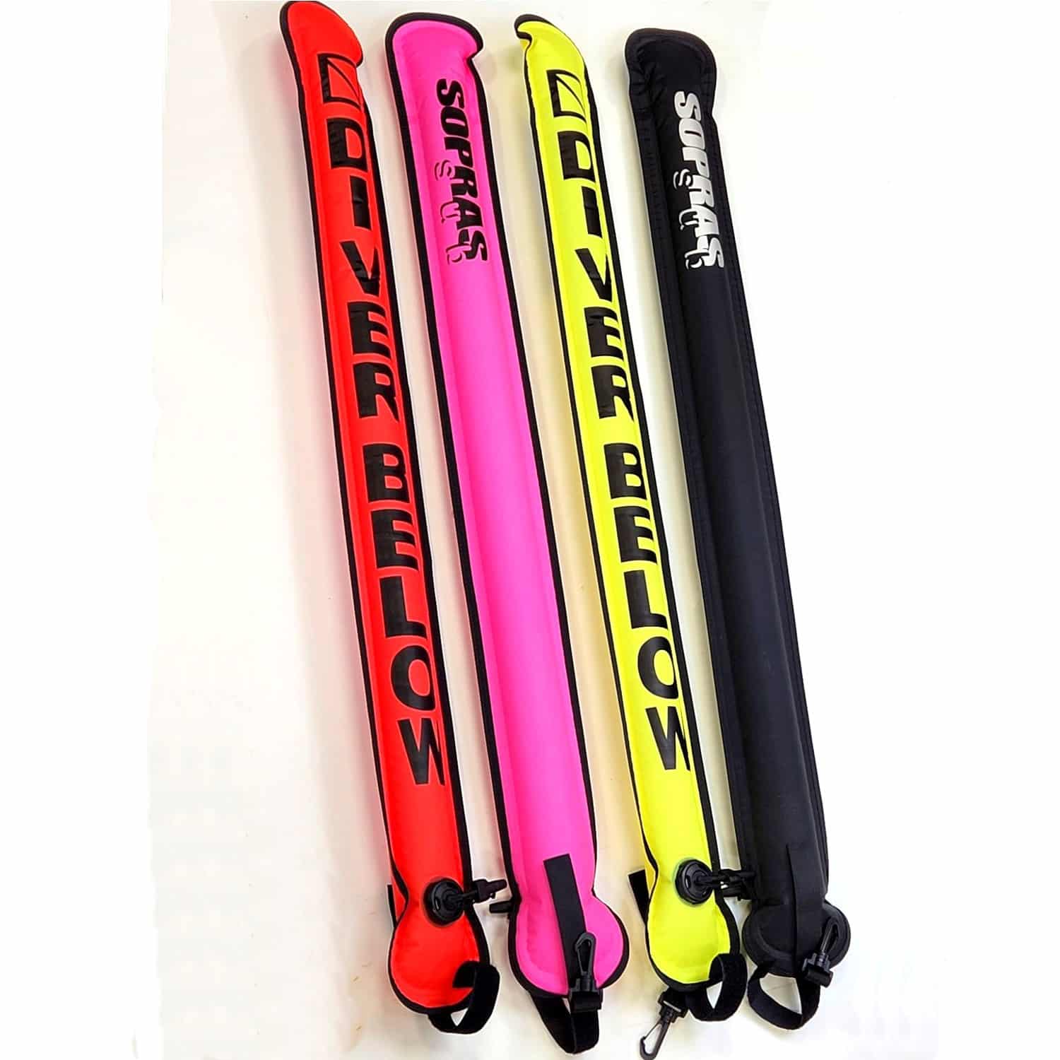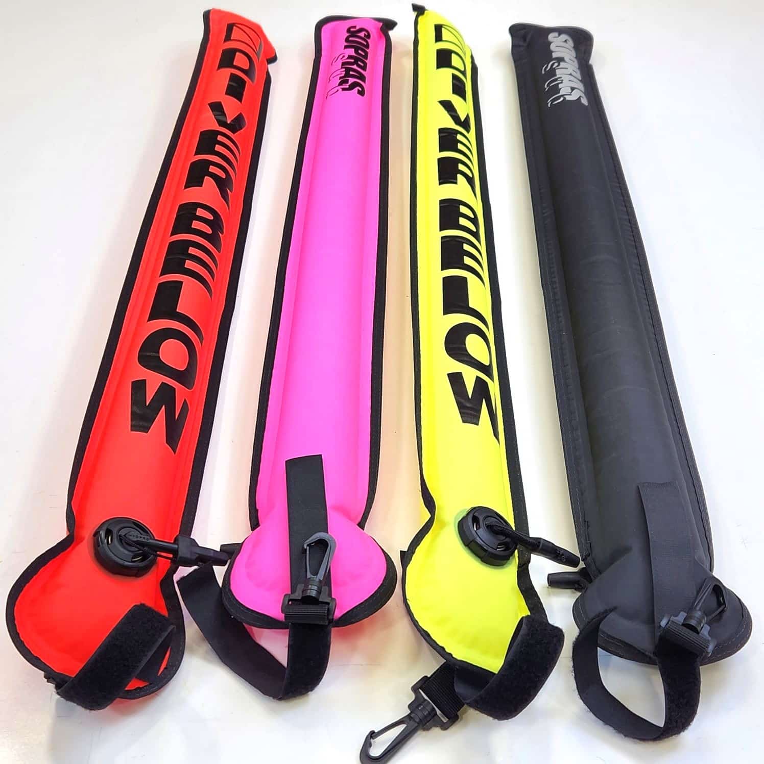 New SMB with size 100x10cm available in 4 colours and equipped with our new all in one inflation/deflation valve, plastic snap link and velcro for storing. This valve allows inflation via your mouth as well as with the inflator LP hose and also deflation by pulling the cord. The low profile of the valve plus the fact that no additional inflation tube is needed allows a much smaller volume of the SMB when rolled up. For this see the last picture and the video here: https://youtube.com/shorts/9B-