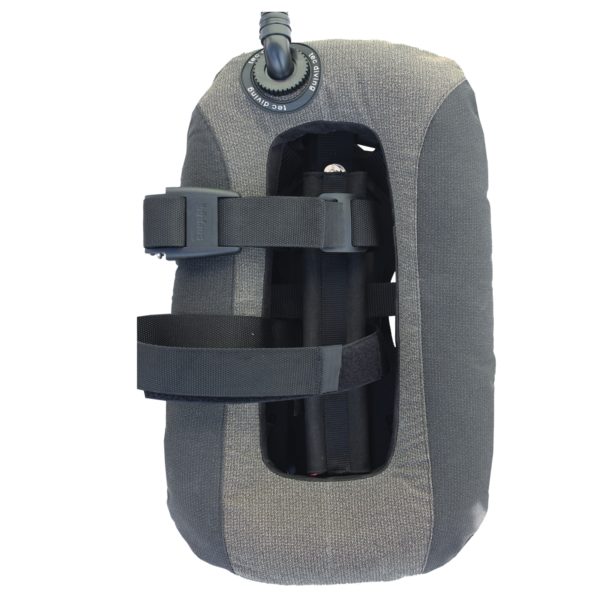 Donut bladder with volume of 12l in Kevlar to be combined with a harness code 240170 mounted on an ultralight black anodized plate and a small very streamlined donut suitable for single tank.