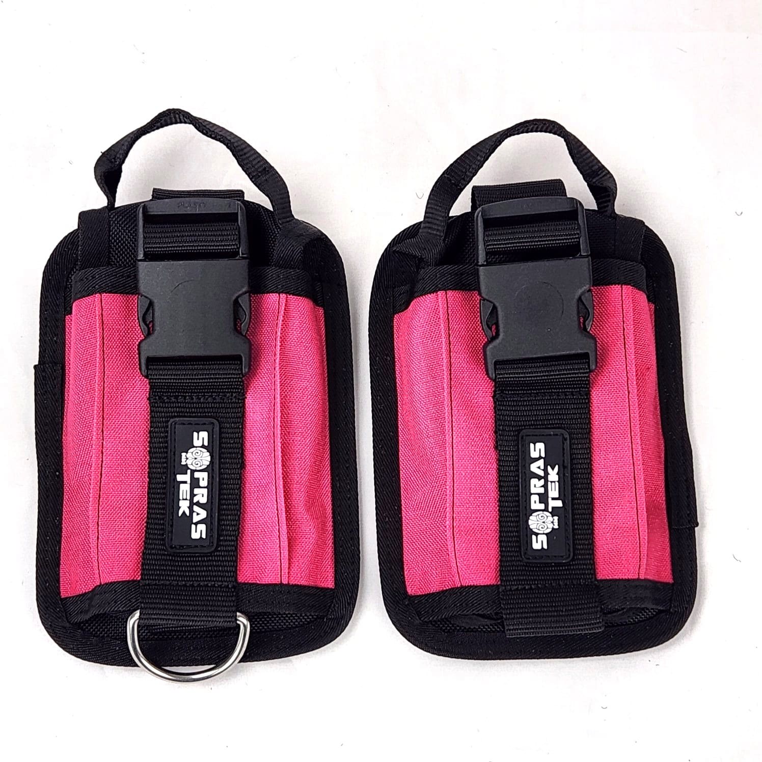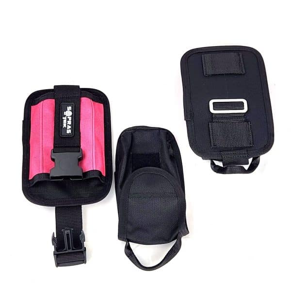 Weight pockets to be attached to your waist with a glider suitable for up to 3kgs each. The left pocket has Dring for attachment of your gauge