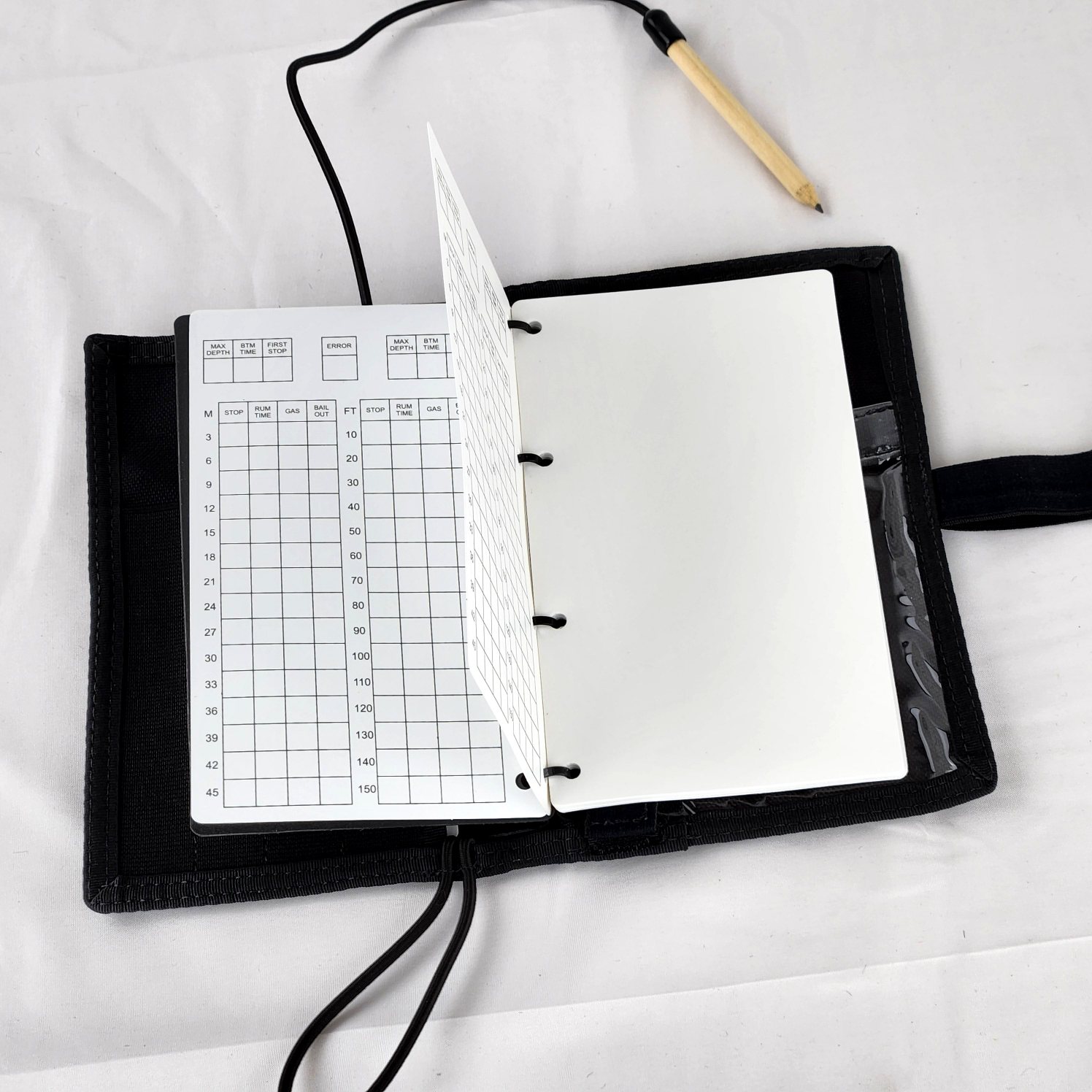 Notebook with pencil and pockets with sheets of waterproof paper with runtime.